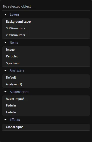For example, if you just added a Particles item and you want to go back to the default settings, you can reset the entire item or individual controllers via the controllers’ three-dot or right-click menu. If you saved a project, then loaded it again and started making changes, the reset button will roll the changes back to your last save.